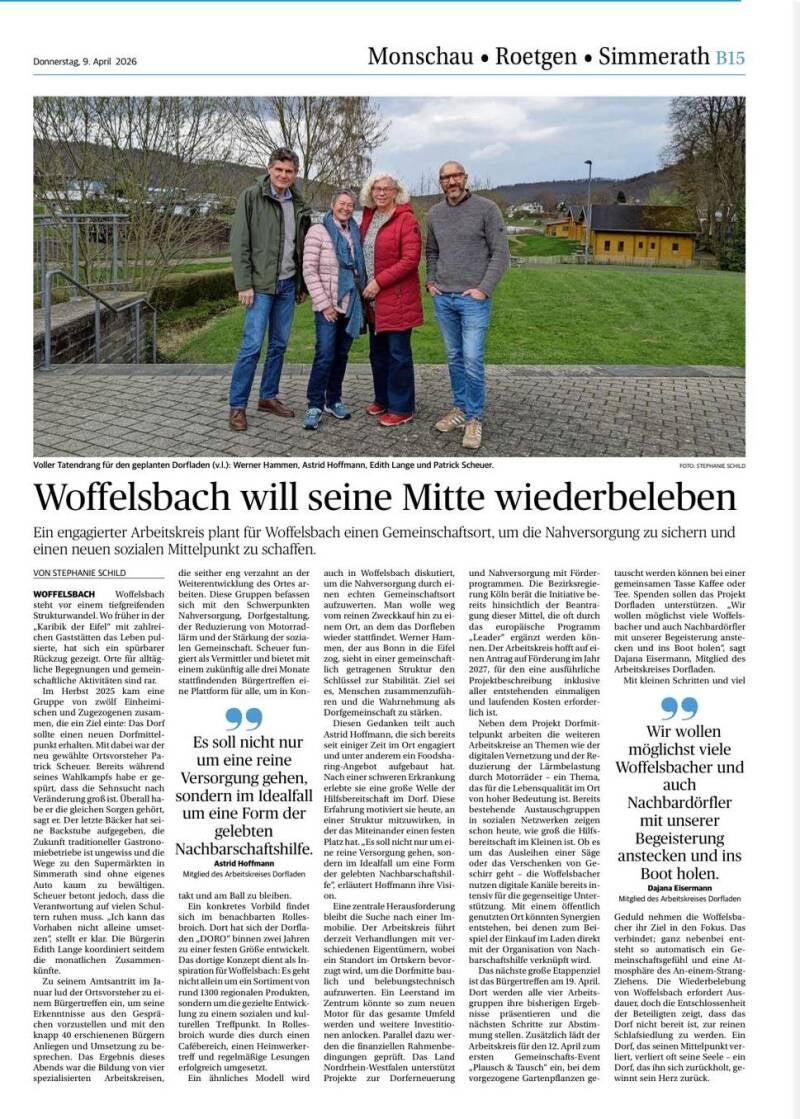 Ich freue mich auf den Austausch und auf die kommenden gemeinsamen Schritte für unser Woffelsbach.